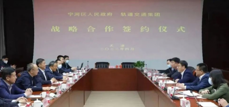 2022年4月15日,天津軌道交通集團與寧河區政府簽署戰略合作協議,雙方將深入開展務實合作,共同推進津寧市郊鐵路項目建設。天津軌道交通集團黨委書記、董事長盧志永,黨委副書記、總經理劉純潔與寧河區區委書記白鳳祥,區委副書記、區長惠冰進行會談并見證簽約。