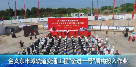 7月28日上午,金義東市域軌道交通工程03標“奮進一號”盾構投入作業。出席儀式的領導為項目黨員突擊隊、工人先鋒號、青年突擊隊授旗并一起點亮“奮進一號”盾構投入作業啟動球。