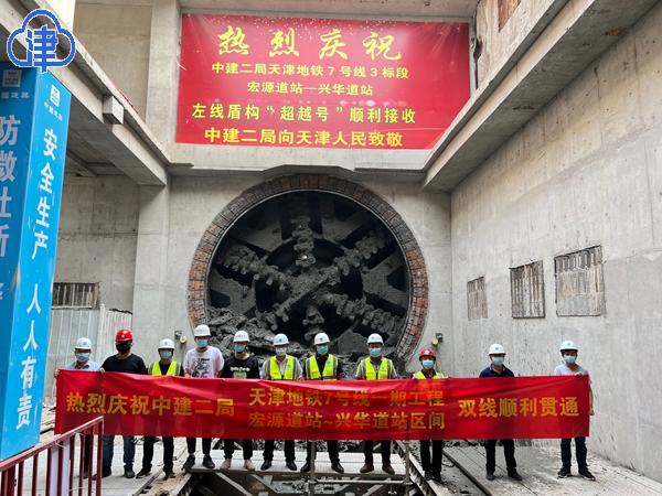 5月17日15時15分,隨著“超越號”盾構機刀盤緩緩破土而出,由中建基礎牽頭、中建二局施工的天津地鐵7號線3標宏源道站-興華道站區間(以下簡稱“宏興區間”)左線順利貫通。這是全線第五個單線貫通的區間,也是地鐵7號線第二個雙線貫通的區間。