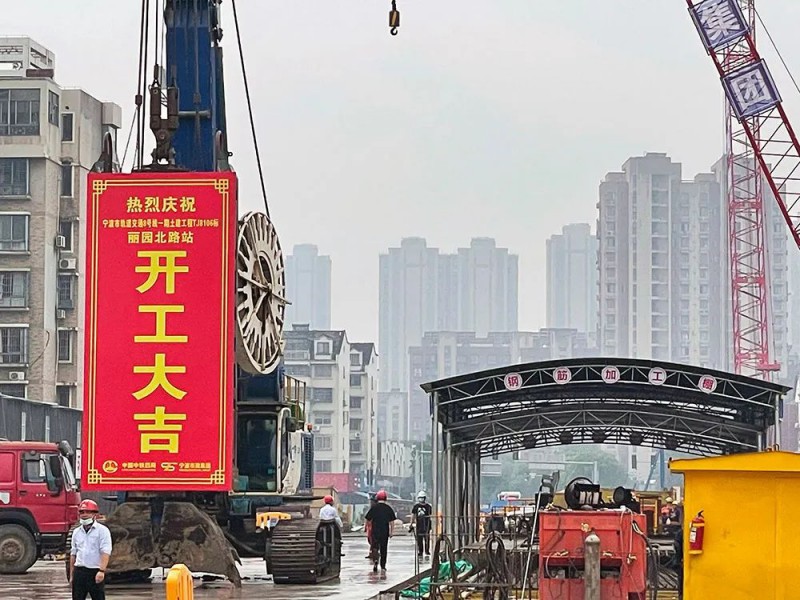 麗園北路站位于海曙聯豐路與麗園路交叉口。開工首日,小編在麗園北路站看到,現場數十輛機械設備有序作業,百余工人揮汗如雨,正在開展地連墻成槽施工,標志著車站主體圍護結構施工正式開始。