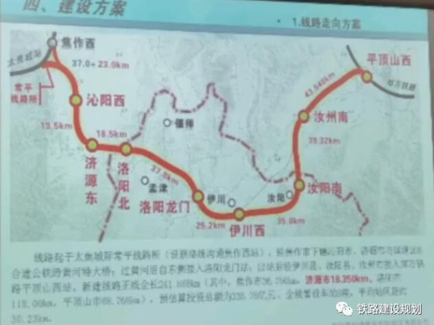 新建線路正線全長241.868km(其中,焦作市36.750km,濟源市18.350km,洛陽市118.00km,平頂山市68.768km)。