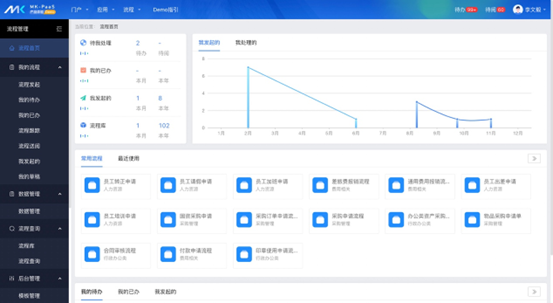 走進成立才三年的某軌道公司,十多個部門幾百號人,分布在不同的工位上,不太像傳統國企的風格。信息中心的小張表示,雖然公司很新,但各種信息系統已經建設得較全,OA辦公已經是第二次升級了。以前,員工要頻繁在各種業務系統間切換,以出差為例,先在OA上提申請,然后去攜程訂機票、酒店,再用其它軟件打車,回來后再去財務系統上提報銷,自從基于藍凌MK-PaaS平臺升級數字化辦公平臺后,在“新司機”的帶領下,可以一站搞掂所有事情,而且差旅相關費用不需要墊資,從普通員工到財務人員都覺得便捷多了。