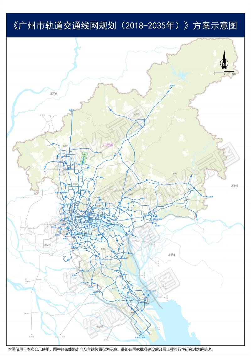 根據市政府的工作部署,廣州市規劃和自然資源局組織編制了《廣州市軌道交通線網規劃(2018-2035年)》,現已形成規劃方案。按照有關規定對規劃成果進行公示,廣泛征求公眾意見。