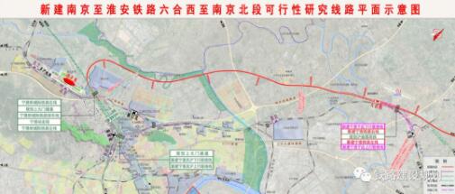 南京至淮安城際鐵路南京段起自六合區皖蘇省界,止于南京北站(不含),正線全長約57.845公里,設六合西站客運站1座,設計速度為350公里/小時,概算總投資約139.41億元,建設工期約為4年。