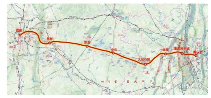 經四川省與重慶市、國鐵集團共同努力推動,國家發展改革委于2021年8月批復成渝中線高鐵項目可研報告,同年9月川渝兩省市會同國鐵集團舉行了成渝中線高鐵建設啟動活動。2022年8月中旬完成了初步設計審查工作,目前線路方案已穩定。
