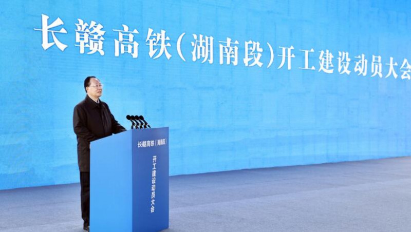 11月21日上午,長贛高鐵湖南段開工建設動員大會在長沙縣召開,張慶偉宣布項目啟動。