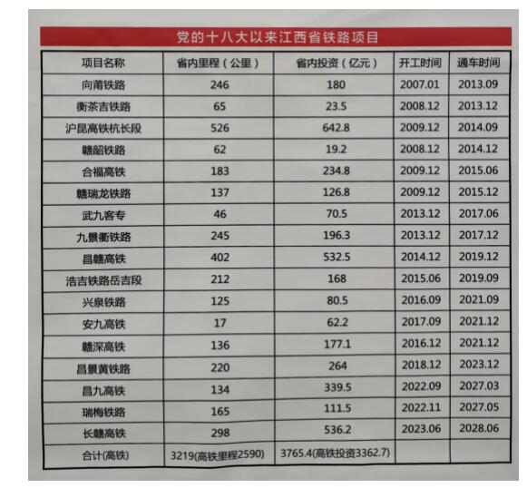 昌九高鐵、瑞梅鐵路、長贛高鐵是我省“十四五”時期規劃建設的重大鐵路項目,3個項目建設總里程804.2公里,總投資1362.4億元,其中省內總里程597.2公里(高鐵432公里)、總投資987.2億元。這三個鐵路項目的開工建設,能積極擴大有效投資,為“決戰四季度、奪取全年勝”提供強力支撐。