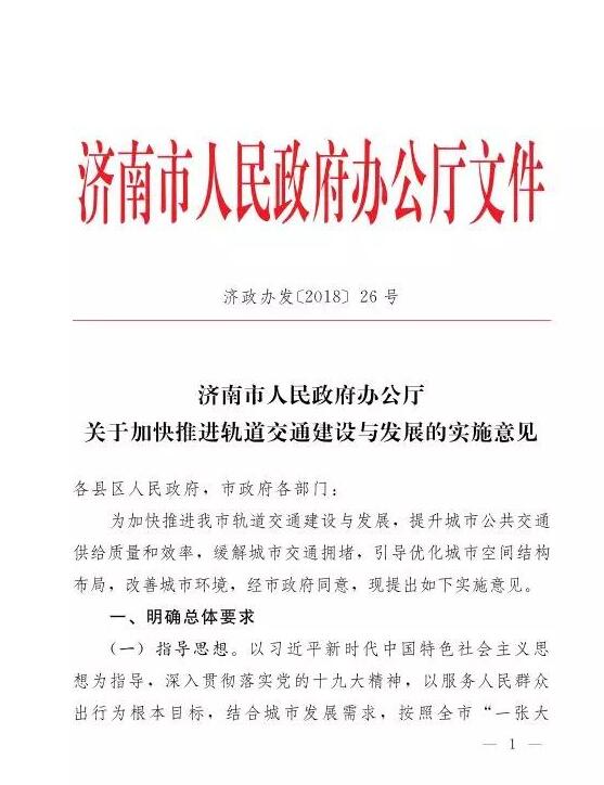 2018年8月8日,《濟南市人民政府辦公廳關于加快推進軌道交通建設與發展的實施意見》(以下簡稱《實施意見》)正式發布。