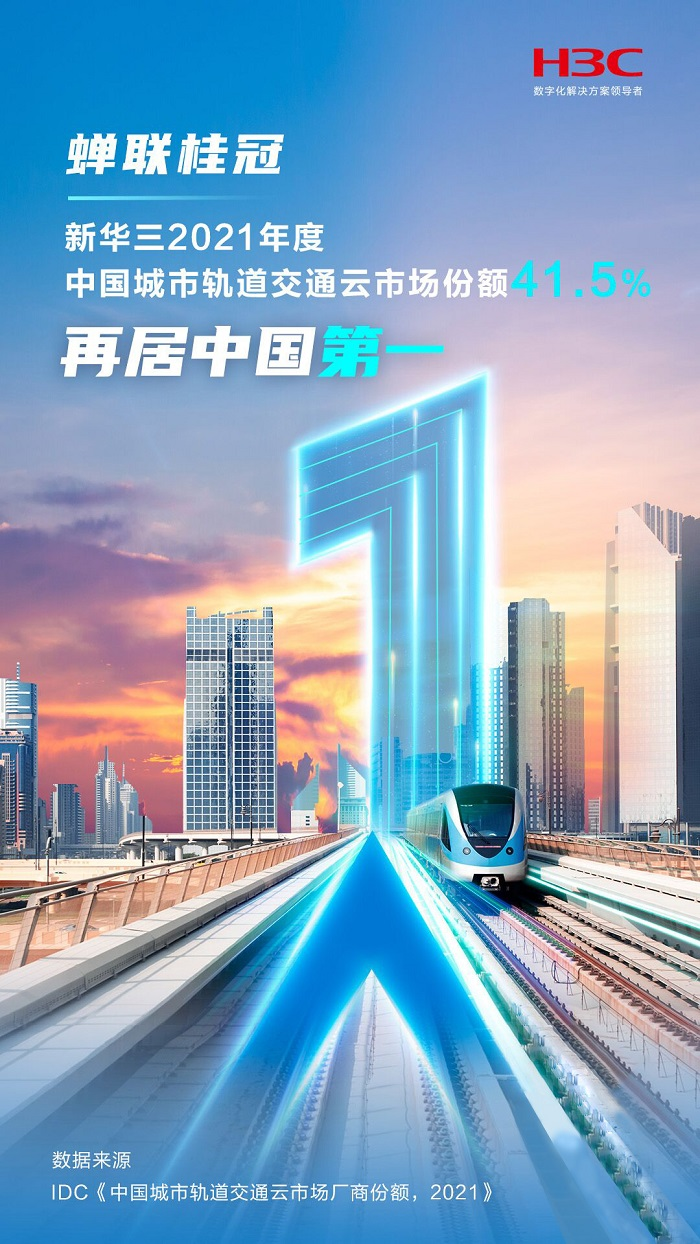 近日,全球領先的IT市場研究和咨詢公司IDC發布的《中國城市軌道交通云市場廠商份額,2021》報告顯示,紫光股份旗下新華三集團在中國城軌云市場繼續保持領先優勢,以41.5%的市場份額再居中國第一。優異的市場成績得益于新華三集團多年來堅持以助力城軌客戶業務創新發展為驅動,依托城軌數字大腦整體解決方案,助力中國城軌數字化轉型的同時,構筑了自身在城軌行業的領導者地位。
