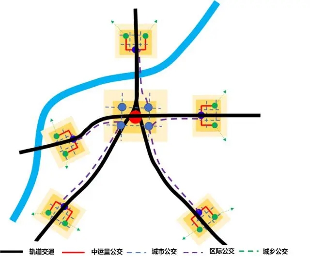 全面加強樞紐錨固。構建“以換乘樞紐為核心,協調各種交通方式,形成集約、高效的客運交通體系”,打造對外交通全配套、軌道交通廣銜接、市域覆蓋的公交樞紐銜接體系。對外交通全配套:結合鐵路、機場、公路客運樞紐新建、改建同步優化建設公交換乘樞紐,規劃配套率100%;軌道交通廣銜接:結合軌道交通建設同步建設公交換乘樞紐,根據換乘銜接規劃落實沿線公交用地。