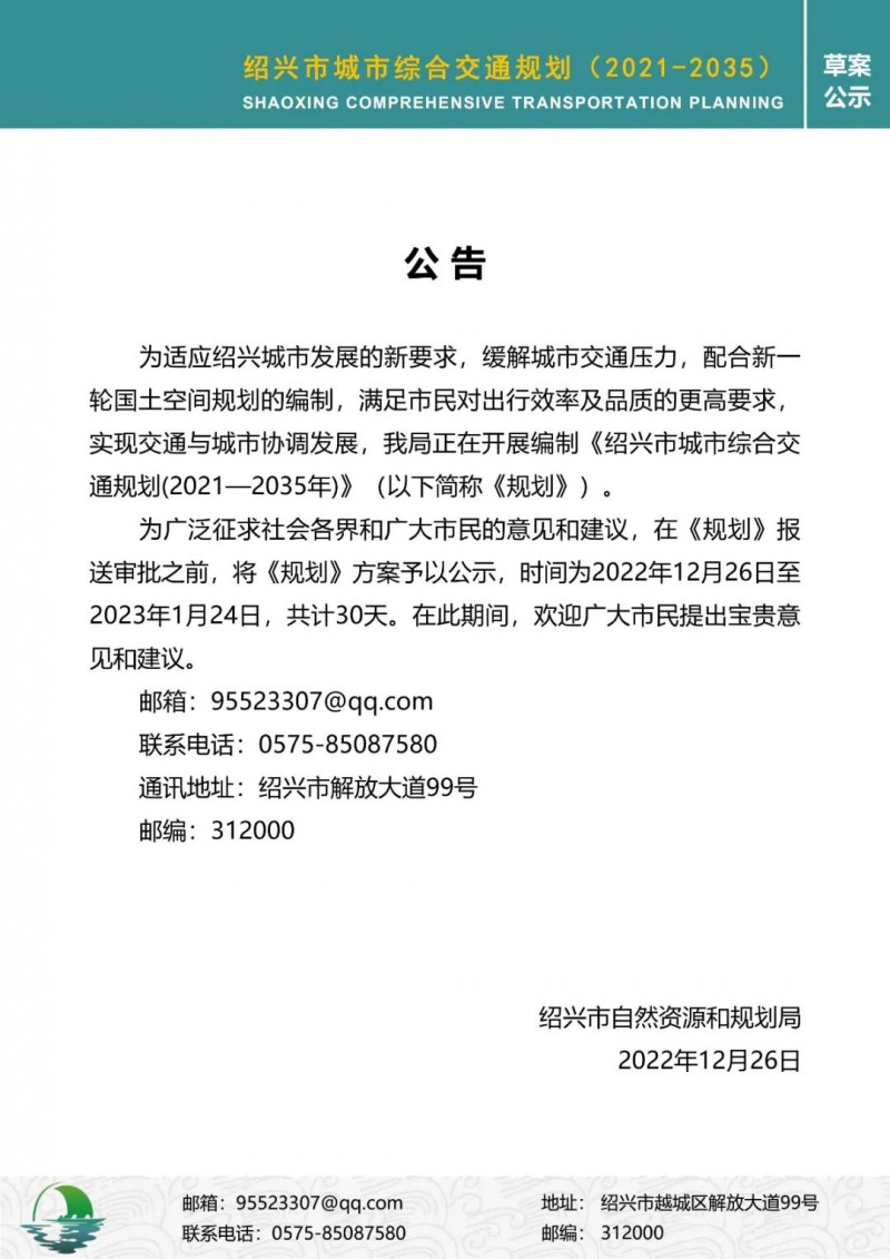 12月26日,紹興市自然資源和規(guī)劃局網(wǎng)發(fā)布《紹興市城市綜合交通規(guī)劃(2021-2035年)》(草案)公示。其中,規(guī)劃2035年軌道交通線網(wǎng)由8條線組成,總規(guī)模278公里。