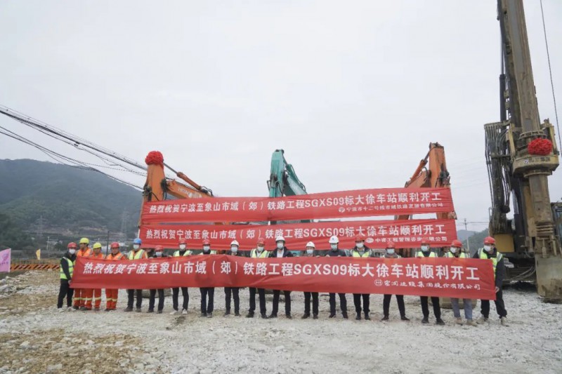 伴隨著履帶挖機(jī)的轟鳴聲,旋挖鉆機(jī)開始樁基施工,數(shù)十名工人各司其職,一派熱火朝天的生產(chǎn)景象。這是市域鐵路象山線大徐站開工的場景。2023年1月9日,該標(biāo)段正式開工,吹響了市域鐵路新年開工新號角。