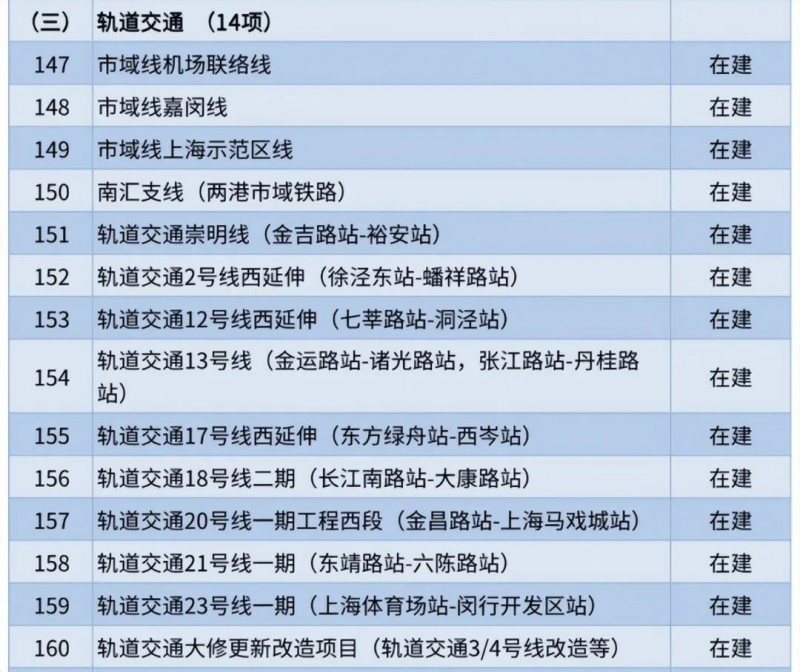 其中,城市基礎設施類(62項)涉及到軌道交通(14項)、市域交通(16項),分別如下: