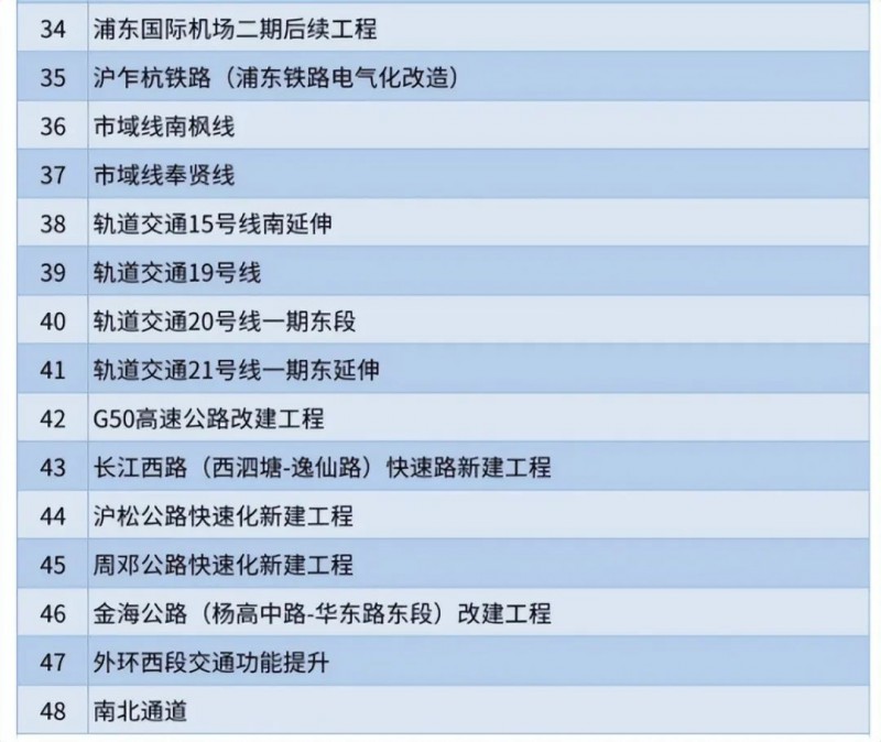 另外,還公布了預備項目(48項),涉及到交通方面有如下15項,如市域線南楓線、奉賢線、15號線南延伸、19號線、20號線一期東段、21號線一期東延伸、滬松公路快速路、南北通道等。重大預備項目是指項目現階段手續尚未齊全,待齊全后近期準備實施的項目。