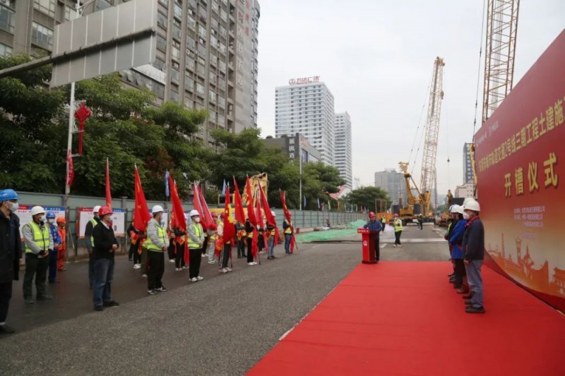 軌道公司、設(shè)計(jì)、監(jiān)理、施工單位等單位代表50余人參加了虎門北站連續(xù)墻開(kāi)槽儀式。在儀式上,2331標(biāo)青年突擊隊(duì),工人先鋒號(hào),黨員先鋒隊(duì)進(jìn)行了授旗和宣誓。