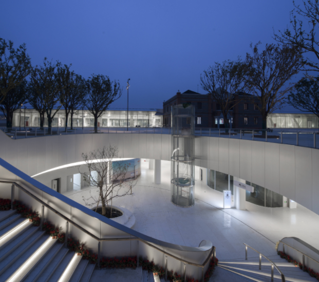 2021年6月25日,嘉興火車站經(jīng)過一年的煥新,重新投入運營,被網(wǎng)友評選為“最美火車站”。火車站站體設(shè)計為地面一層、地下多層,是中國首個全下沉式火車站,外觀視覺1:1還原歷史上的嘉興車站。遠觀車站被周圍樹木環(huán)繞,站房內(nèi)外栽種大型喬木500多棵,饒有古趣,也獲得了“森林中的火車站”的美稱。而嘉興站的出圈,還和它極有未來感和藝術(shù)感的燈光設(shè)計有著密不可分關(guān)系。