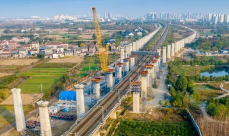 全長77.479公里、投資117.41億元的荊荊鐵路以最快每天架設10孔箱梁的速度,全力推進架梁施工。本月底,隨著江漢運河特大橋連續梁拱主梁合龍,荊荊鐵路全線重點工程、控制性工程將全部完工。