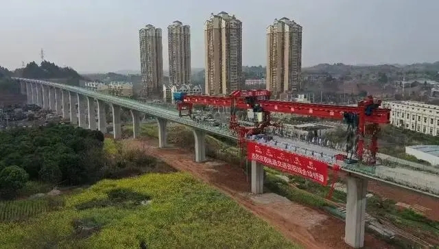 3月10日,隨著最后一榀預制箱梁精準架設完成,軌道交通資陽線實現全線橋通,為軌道鋪設、電氣化施工等后續工作的順利開展創造了有利條件。