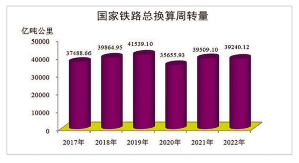 總換算周轉量。國家鐵路總換算周轉量完成39240.12億噸公里,比上年減少268.98億噸公里,下降0.7%。
