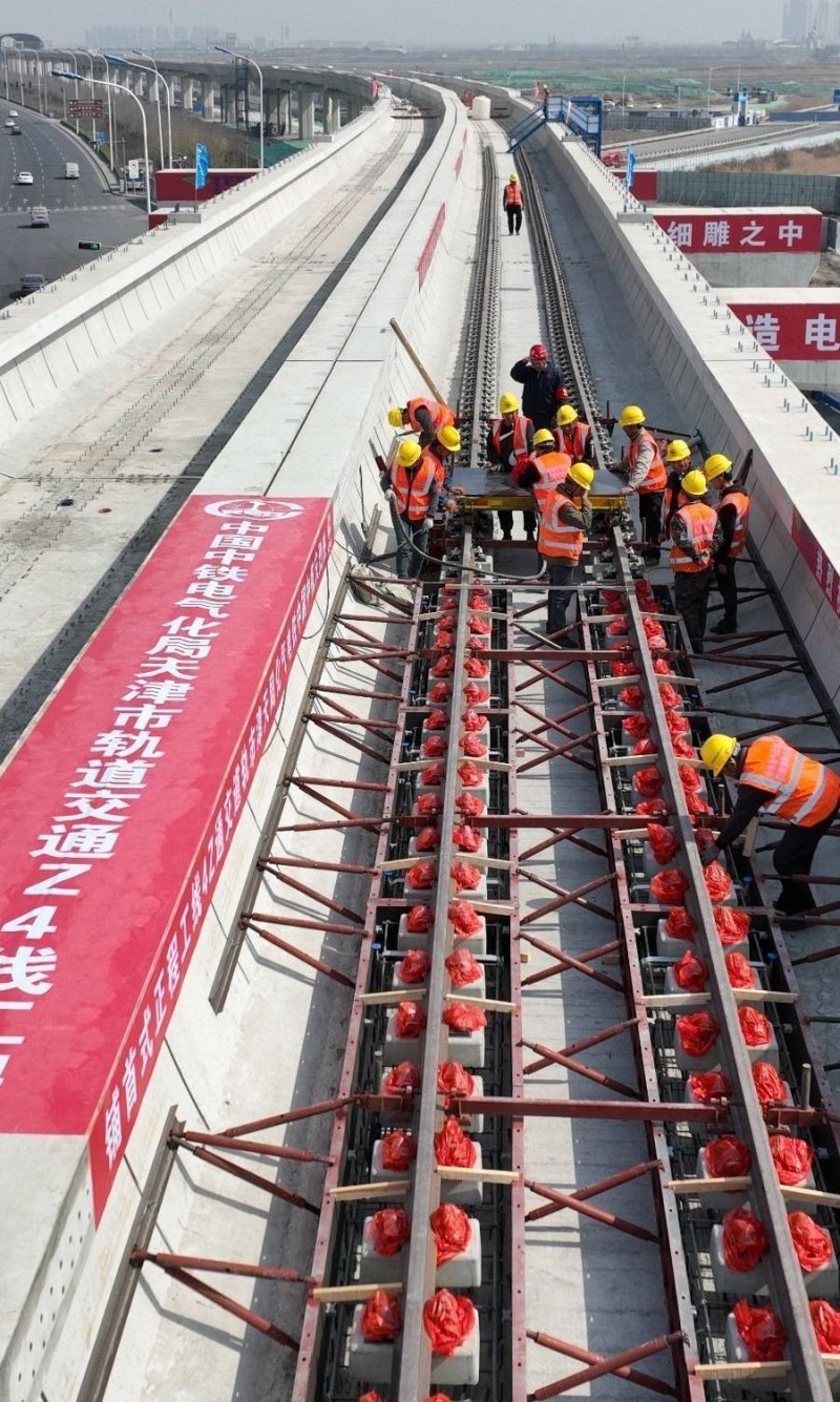 3月29日,天津市軌道交通Z4線一期工程軌道工程首鋪儀式在Z4線濱海南開中學站至航安道站施工現場舉行。