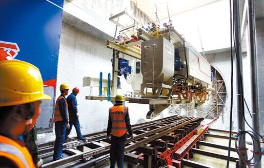 3月1日,記者在史家灣站東端盾構(gòu)機(jī)始發(fā)區(qū)域看到,第二臺(tái)盾構(gòu)機(jī)已有5部臺(tái)車到位。