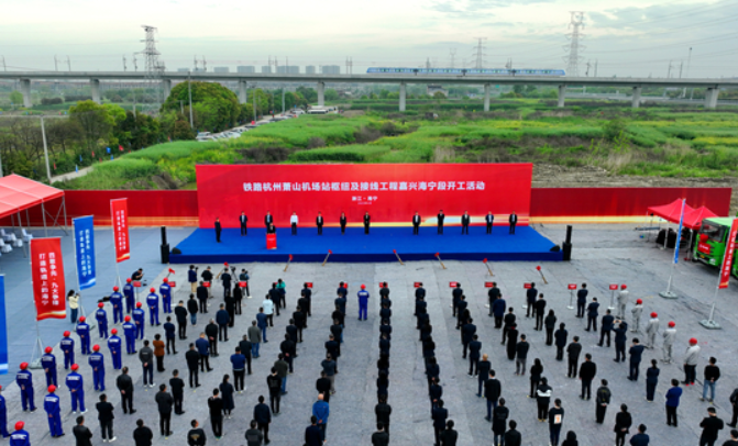 4月14日上午,杭州機場高鐵項目海寧段舉行開工儀式。市委副書記、市長許紅蓮宣布開工。杭州交投集團、機場高鐵公司等相關主要負責人出席開工儀式。