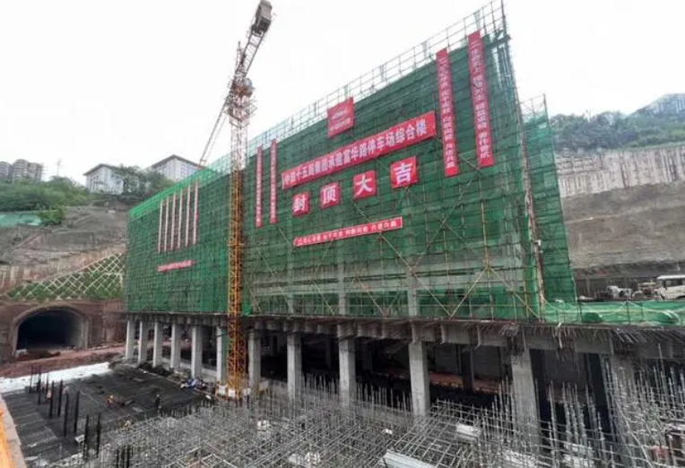 中鐵建重慶投資集團消息,4月24日,隨著混凝土開盤澆筑,重慶軌道交通18號線富華路停車場綜合樓主體結構順利實現封頂,為18號線年內實現通車目標提供保障。