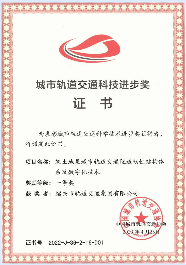近日,由市軌道交通集團牽頭完成的課題“軟土地層城市軌道交通隧道韌性結構體系及數(shù)字化技術”榮獲2022年度城市軌道交通科技進步獎一等獎。