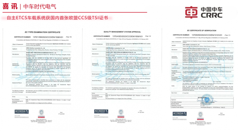 近日,由中車時代電氣旗下湖南中車通號自主研發的SigThemis CCO-600型CCS(Control-Command and Signaling)車載系統順利通過TSI NoBo SB+SD認證,獲國內首張通過歐盟互聯互通認證的CCS級TSI證書,具備了在歐洲標準線路上線運行的資質。