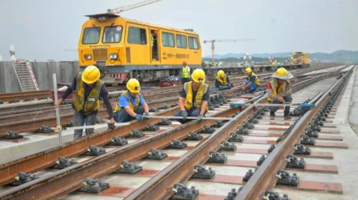 7月18日,中鐵十一局工人在貴陽軌道交通S1線貴安新區麥湖路站進行道岔精調作業。