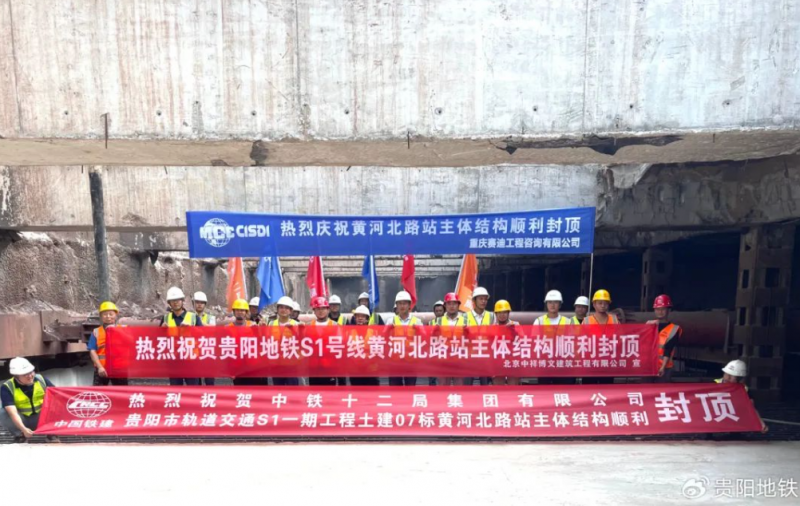 9月2日,由中鐵十二局承建的貴陽軌道交通S1線一期工程黃河北路站主體結構順利封頂,成為全線第八個完成主體結構的地下車站。