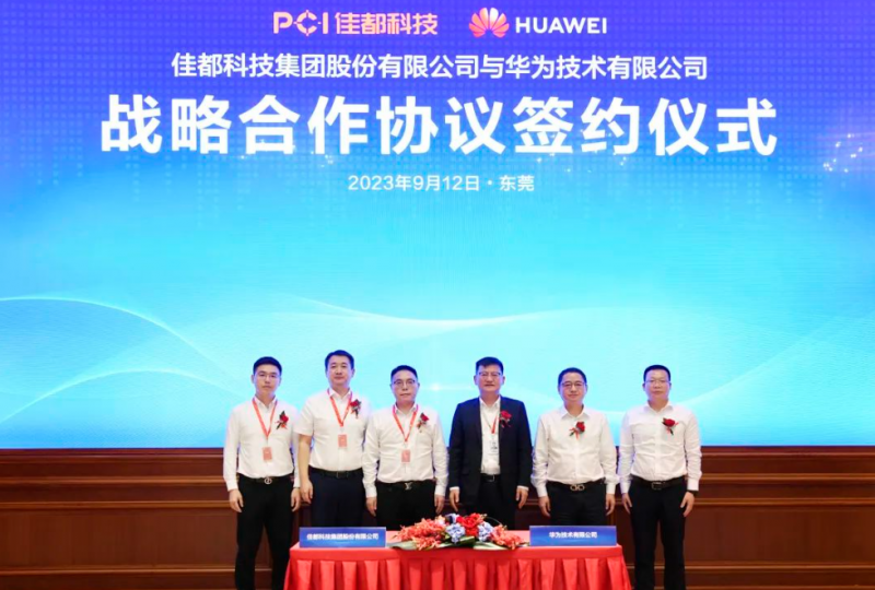 9月12日,佳都科技集團股份有限公司(以下簡稱“佳都科技”)與華為技術有限公司(以下簡稱“華為”)在東莞松山湖簽署戰略合作協議。佳都科技董事、執行總裁何華強,佳都科技副總裁林超,華為機場與軌道軍團CEO李俊風,華為中國政企業務副總裁楊萍,華為廣東政企合作伙伴發展與管理部部長李洲洲等出席簽約儀式。林超和李洲洲分別代表雙方簽署協議。