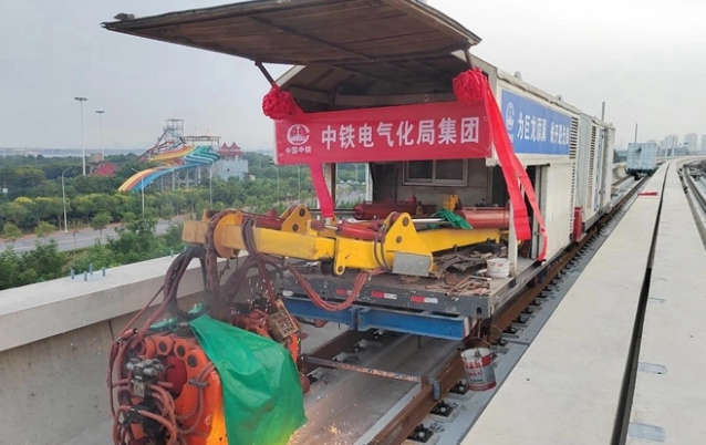 9月16日,在天津市軌道交通Z4線一期工程PPP項目北(塘站)中(生態城站)區間施工現場焊花飛濺,中鐵電氣化局鐵路工程公司施工人員操作一臺移動式閃光焊軌機,對準焊接點位,僅用149秒就將兩根25米的標準鋼軌“焊”為一體。這標志著天津市軌道交通Z4線進入焊軌施工階段。