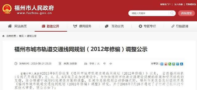 8月24日,福州市政府網站發布《福州市城市軌道交通線網規劃(2012年修編)調整公示》,自福州市政府2013年9月份批復《福州市城市軌道交通線網規劃(2012年修編)》以來, 目前福州地鐵1號線已開通運營,2、4、5、6號線正在加速建設中。為加快福州市軌道交通建設規模的拓展和空間結構的支撐,結合福莆寧城際F1線建設方案的調整,在城市總體規劃啟動修編之際,福州市發改委及時組織開展《福州市城市軌道交通線網規劃(2012年修編)調整》研究,并于2018年7月26日通過了省住建廳組織的專家技術審查。本次公示時間:8月24日至9月24日。