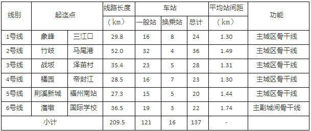 6號線:福州主城與濱海新城軌道交通聯系骨干線。線路全長36.5km,設站22座。途經三江口、長樂、濱海新城等組團,是城市東擴發展戰略的保障項目,引向城市沿江向海發展,引導和支持長樂、濱海地區開發建設。