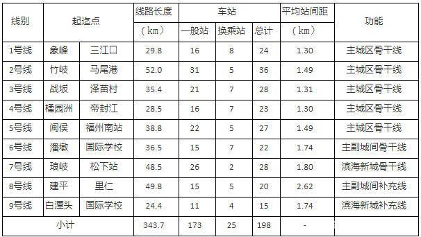 9號線:濱海新城軌道交通加密線路。線路全長24.4公里,設站15座。服務于濱海新城和長樂新城,促進新福州建設。線路起始于長樂市營前鎮白潭頭,向東南行下穿沈海高速公路后折向南,上跨上洞江后經馬頭村折向東南,再上跨上洞江,經首占鎮上洋頂、首占村和龜頭里,經古槐鎮青橋村后折向江鶴路,沿江鶴路行走經雁塘村再折向南行,經古槐鎮、感恩村后再折向東行,沿槐海路行走,至國際學校換乘6號線。