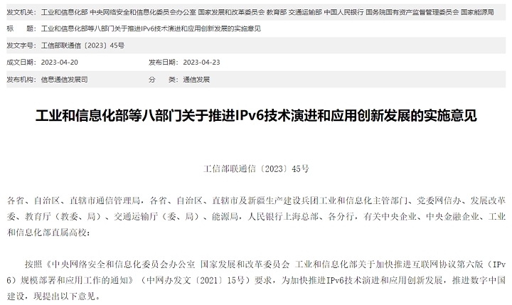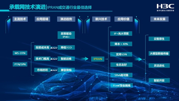 2023年4月工信部發布《工業和信息化部等八部門關于推進IPv6技術演進和應用創新發展的實施意見》。文件中明確指出“要求政務、金融、能源、交通、教育、制造等行業和領域,在IPv6規模部署基礎上實現“IPv6+”技術的廣泛應用”。“IPv6+”即指在IPv6網絡的基礎上引入分段路由(SRv6)、網絡切片、隨流檢測、應用感知網絡(APN)和網絡智能化等新型技術。交通行業作為IPv6+落地的重點行業,網絡的智慧化轉型需求迫切。
