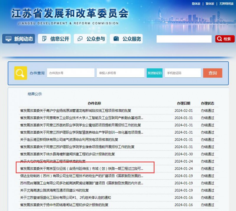 據(jù)江蘇省發(fā)改委網(wǎng)站,南京至儀征線(含揚州延伸線)過江段工程可行性研究已于1月24日獲江蘇省發(fā)改委批復(fù)。