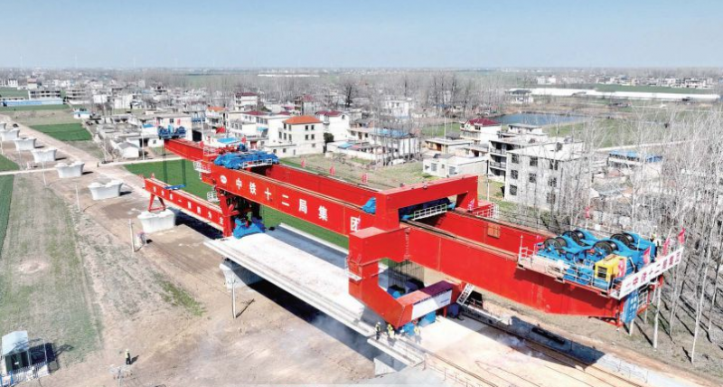 “首榀箱梁架設(shè)成功意味著阜淮鐵路四標(biāo)段正式進入橋梁上部結(jié)構(gòu)施工,開啟線上線下同步施工新階段。”中鐵十二局阜淮鐵路站前四標(biāo)項目部黨支部書記丁江華介紹,整個架梁施工預(yù)計在今年底至明年初結(jié)束,屆時將進入橋面系施工階段,有望2026年建成通車。