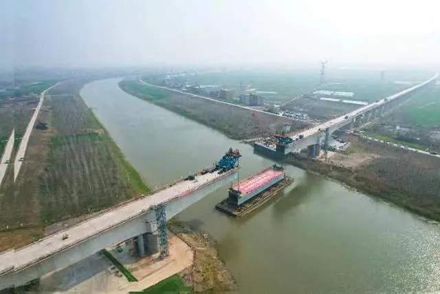 3月15日,隨著跨中50m鋼梁段順利吊裝就位,由長江沿岸鐵路集團股份有限公司建設管理,中鐵上海工程局承建的滬渝蓉高鐵天門漢北河鐵路特大橋無拱承吊索式鋼混連續梁順利合龍。此梁型在國內運營時速350公里高鐵中暫無使用先例,連續梁的成功合龍為后續高速鐵路大跨度橋梁的應用場景拓展了思路。