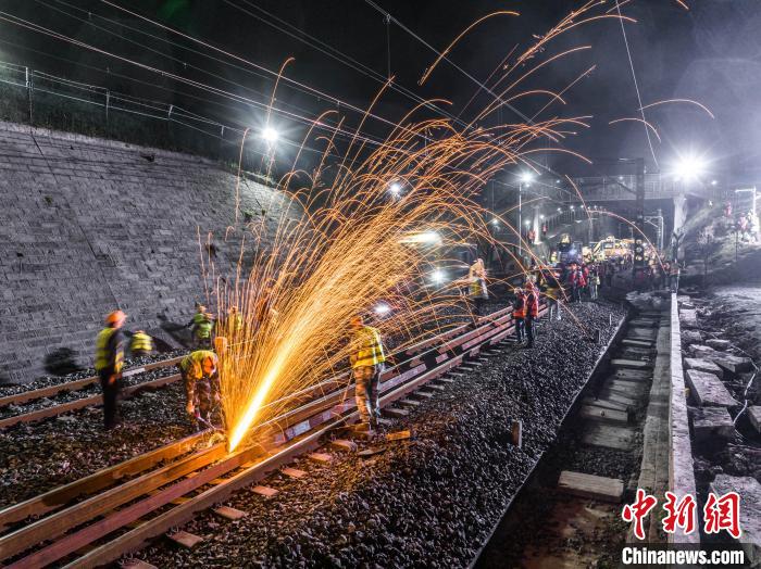 3月20日23時30分,來自中鐵五局、成都局集團重慶工電段等多家單位,按照既定方案,開展拆除線路、起道、撥道、搗固、鋼軌接頭焊接、機車壓道等施工工序。經(jīng)過600余名施工人員、10余臺大型機械約320分鐘的緊張作業(yè),順利完成施工任務(wù)。