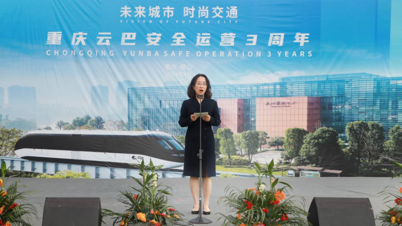 2024年4月16日,重慶云巴迎來正式開通運營三周年,在風景如畫的重慶云巴秀湖公園站,舉行了重慶云巴安全運營1000天暨開通三周年慶典活動。