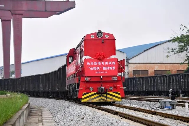 4月18日,伴隨著響亮的汽笛聲,在省港航水利集團所屬城陵磯港口集團長沙新港專用鐵路上,一列貨運火車發(fā)出,完成該專用鐵路“公轉(zhuǎn)鐵”整列發(fā)送業(yè)務(wù)首發(fā)。這打破了該專用鐵路自開通以來只有鐵路到達的業(yè)務(wù)模式,標志著長沙新港專用鐵路“公轉(zhuǎn)鐵”發(fā)送業(yè)務(wù)正式開通,長沙新港邁上“水鐵公”多式聯(lián)運高質(zhì)量發(fā)展的新征程。