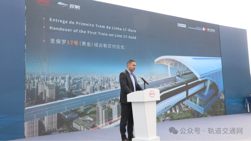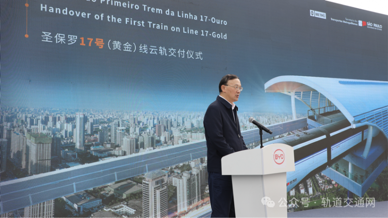 4月27日,巴西圣保羅地鐵17號線(又名“黃金線”)的云軌車輛首列車交付儀式在比亞迪四川廣安工業(yè)園圓滿舉行。巴西圣保羅地鐵公司總裁胡里奧先生、中國城市軌道交通協(xié)會副會長仲建華、比亞迪集團副總裁任林等領(lǐng)導共同出席了本次交付儀式,圣保羅州長塔西西奧·弗雷塔斯先生、比亞迪巴西分公司總經(jīng)理李鐵等領(lǐng)導于線上共同見證。
