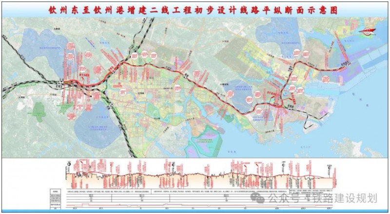 其中新建馬皇至欽州東段雙線約8.4公里,北接南防鐵路馬皇站,并行既有欽北鐵路后,并行既有邕北客專,上跨國道G325、欽江后至欽州東站。