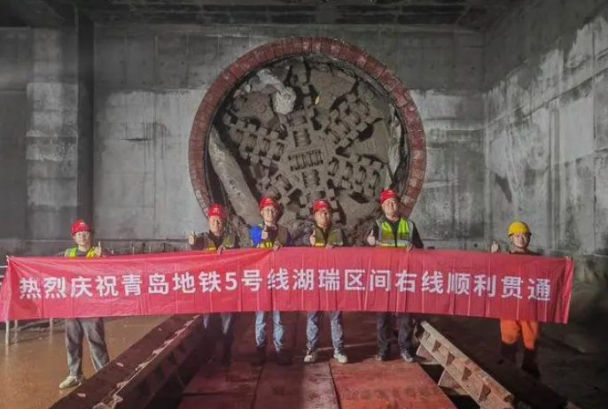 伴隨著“瑞安”號盾構機刀盤破土而出,日前,青島地鐵5號線瑞昌路站~湖島站區間(簡稱“湖瑞區間”)右線盾構提前32天順利貫通,為地鐵5號線建設帶來新的突破。