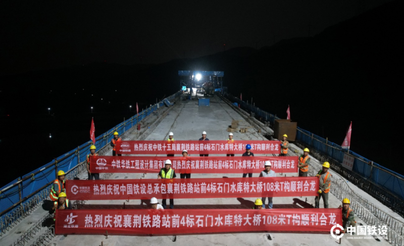 5月22日,隨著最后一立方混凝土在機械泵車手臂下緩緩澆筑入模板,集團公司EPC工程總承包項目,襄荊高鐵全線跨度最大的T構—石門水庫特大橋2*108米T構實現提前合龍,打通了架梁通道的重要一環,為全線貫通奠定了堅實的基礎。