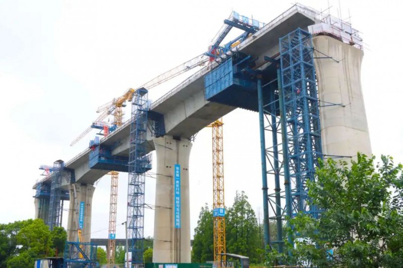 川沙特大橋跨奚陽公路連續梁位于浦東新區合慶鎮,梁長113.1米,共31個節段。跨華夏東路北匝道連續梁也位于合慶鎮,是華夏東路高架區域三連跨中首個合龍的連續梁,橋面寬12.1米,梁全長137.2米,采用懸臂澆筑工藝施工。