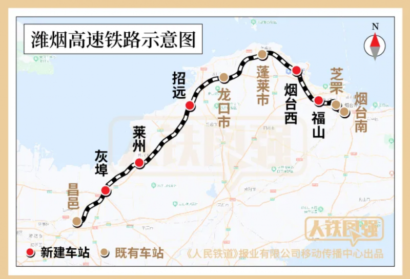 濰煙高鐵通車后,將與濰榮高鐵、萊榮高鐵、青榮城際鐵路連通,構成膠東半島“兩橫一縱”高速鐵路布局,加快山東半島城市群互聯互通,連接起青島、煙臺、濰坊、威海4市16個縣市區,惠及沿線2800萬人。