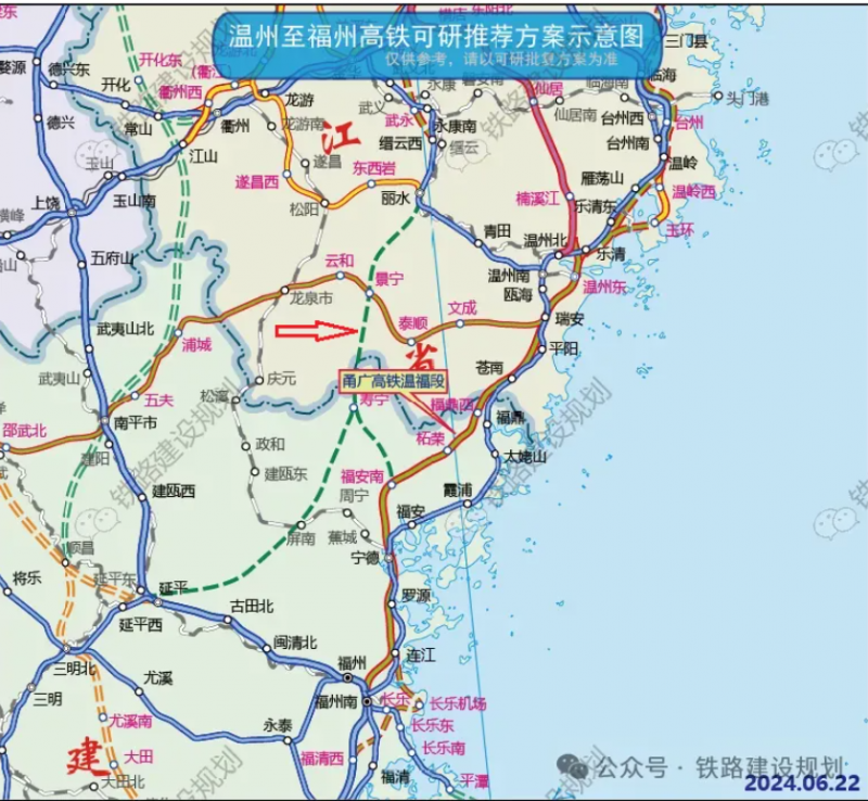 據了解,溫武吉鐵路已列入國家鐵路網規劃,并開展了相關前期設計等工作,寧麗鐵路目前還尚未列入國家鐵路網規劃(時速預計為350km/h)。